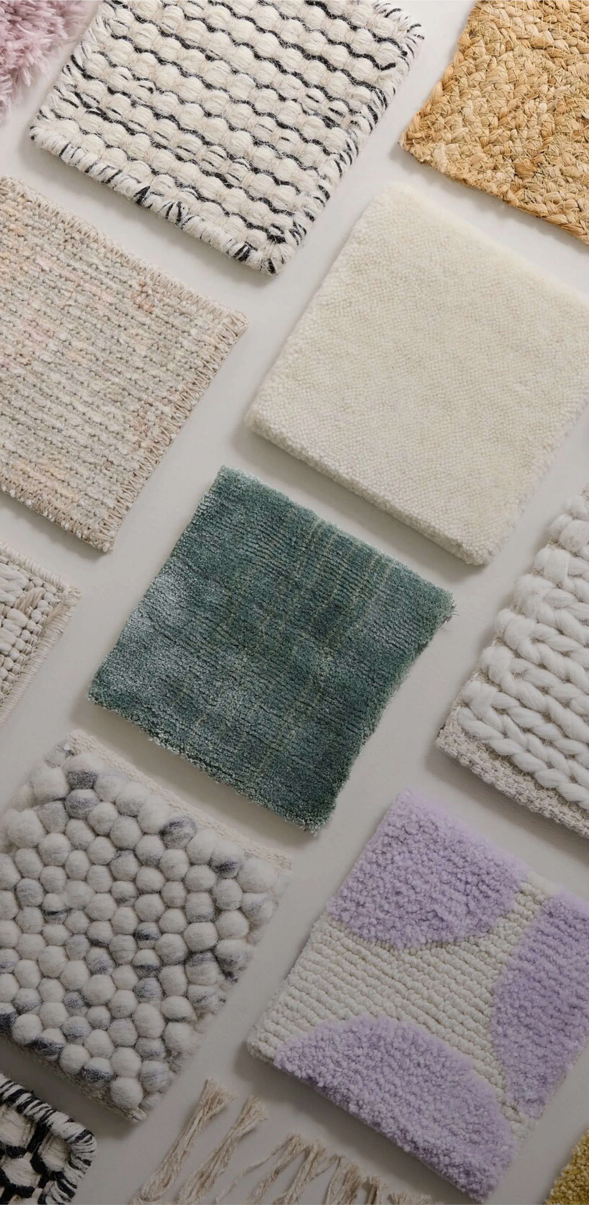 *Vi har teppeprøver på mange av kolleksjonene våre. Du finner ut om favorittteppet ditt er tilgjengelig som vareprøve på produktsiden. Produkter fra benuta Finest er ekskludert fra prøveboksen.